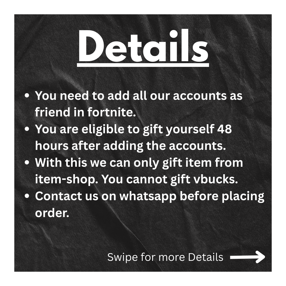 You need to add our fortnite accounts as friend so that we can gift you the bought item.